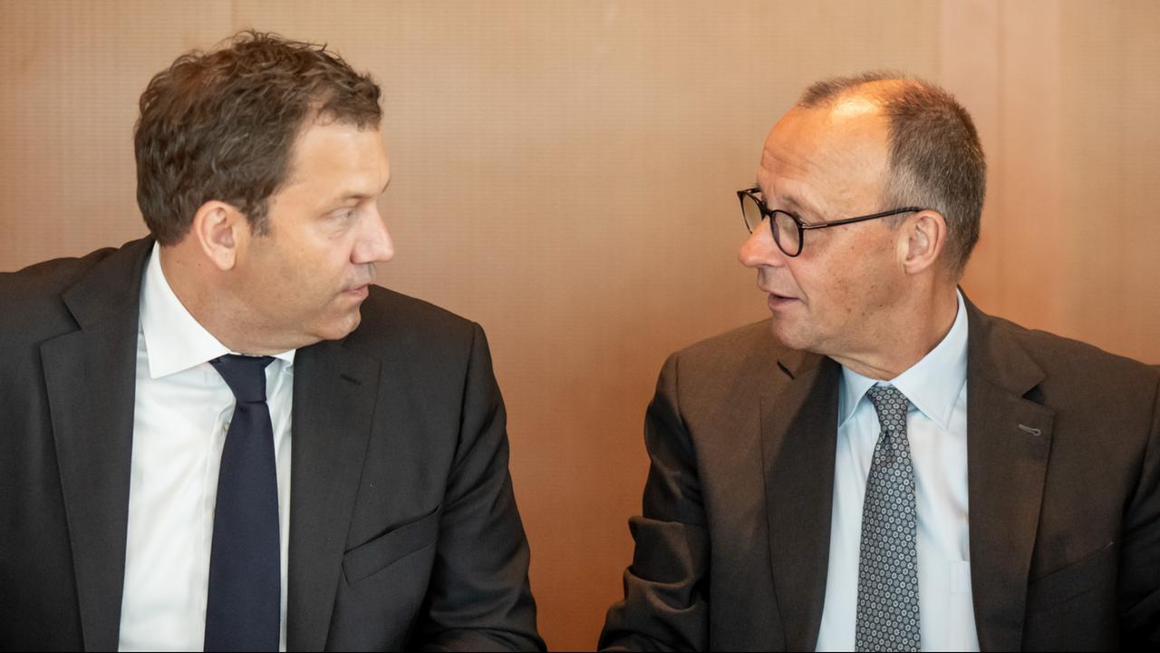 Lars Klingbeil und Friedrich Merz schauen sich an