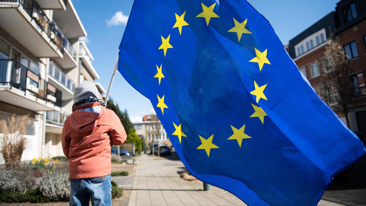 Ein Kind mit einer Europafahne in Brüssel.