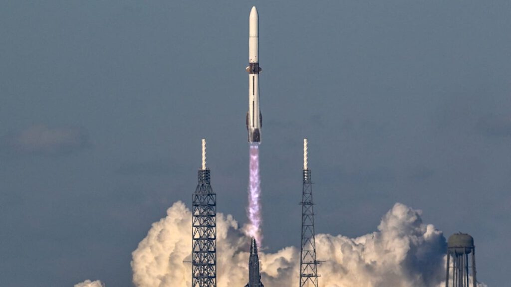 Der Start der „New Glenn“-Rakete war ursprünglich am Sonntag geplant. Nach zwei Startverschiebungen wegen ungünstigem Wetter über dem Startplatz sowie Sonnenwinde hob die Rakete jetzt mit rund einstündiger Verzögerung um 15:55 Uhr Ortszeit vom Weltraumbahnhof Cape Canaveral in Florida in den wolkenlosen Himmel ab.