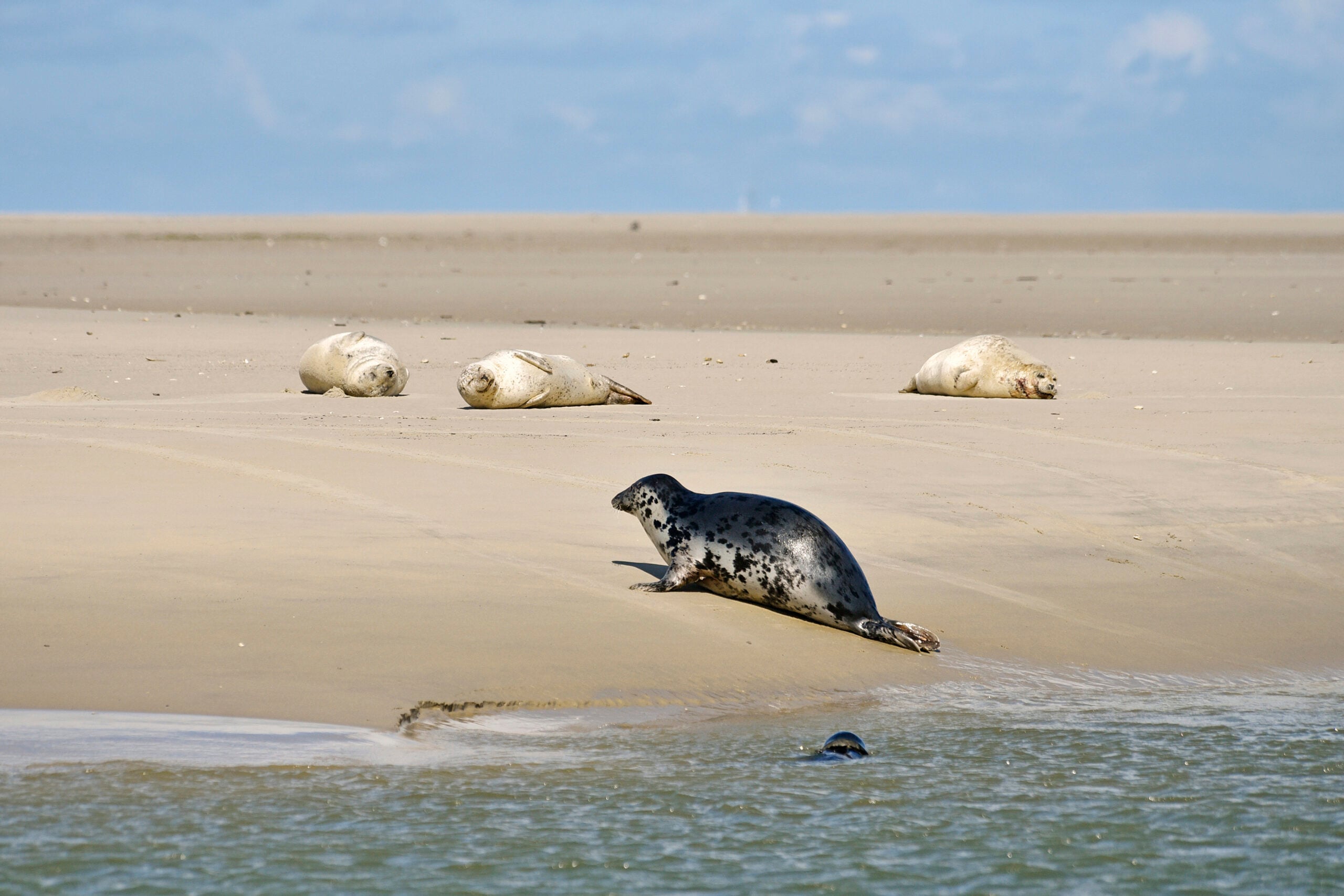 Eine Kegelrobbe auf der Sandbank Hohes Riff auf Borkum