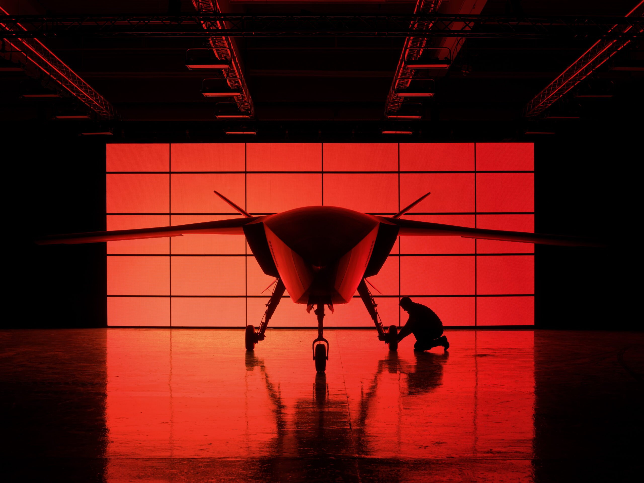 Der Jet Soll Autonom Florgen und Mittelels Helsings-ki „Centaur“ Gesteuert Werden. DAS Design Stellte DAS Startup Hute ist ein Standort der Helsing-toChter-Grob-Flugzeuge von Tussenhausen VOR. Mit Dabei: Markus Söder.