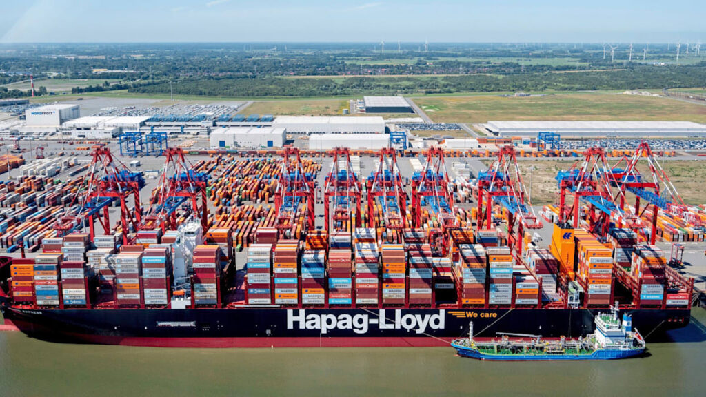 Habben Jansen sagte, die Einsparungen, die Hapag-Lloyd mit der Gemini-Kooperation realsieren könne, würden 2026 deutlicher sichtbar werden. Klarer sei dann auch, wie viele Kunden bereit seien, einen Aufschlag für die weit über dem Schnitt des Marktes liegende Pünktlichkeit von Maersk und Hapag-Lloyd zu zahlen. Die beiden Reedereien haben für die Gemini-Allianz das aus der Luftfahrtbranche entlehnte „Hub and spoke“-System eingeführt. Die großen Containerschiffe auf dem Verkehr zwischen Asien und Europa bringen die Ladung vor allem zu den Haupt-Verteilzentren, in Nordeuropa sind das vor allem Terminals in Rotterdam, aber auch in Wilhelmshaven oder Bremerhaven. Von dort werden die Container mit relativ großen Zubringerschiffen in kleinere Häfen wie Danzig weiter verschifft. Erst von dort aus erfolgt die Feinverteilung, etwa mit kleineren Feederschiffen.