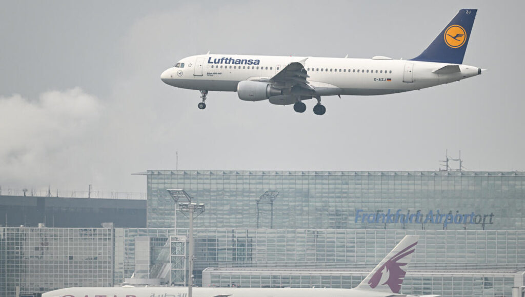 Lufthansa Airbus A320-200 kommt am Frankfurter Flughafen an: Airbus-Aktie steht unter Druck (Foto: dpa).