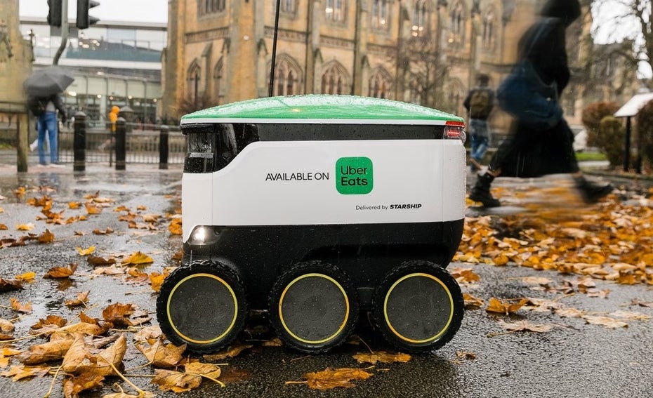 Uber Eats will Essen künftig auch autonom per Roboter ausliefern – und hat dafür eine Partnerschaft mit Lieferroboter-Hersteller Starship Technologies geschlossen. Der erste Testlauf startet im englischen Leeds, danach folgt Sheffield – weitere Teile Großbritanniens sollen im Laufe des Jahres folgen.